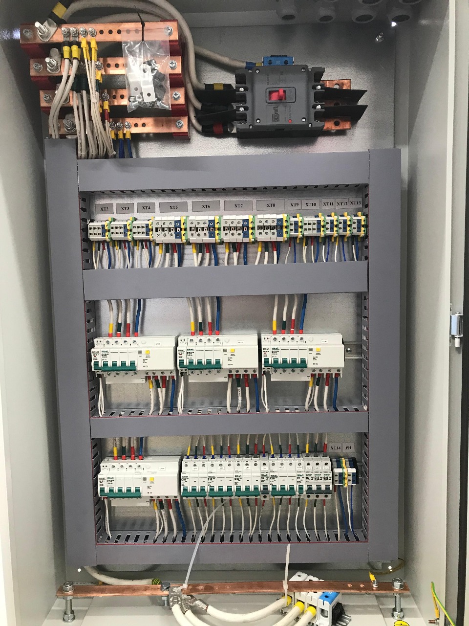 Весь процесс соответствует правилам сборки НКУ. Момент затяжки клемм, монтаж элементов с соблюдением инструкций, соответствие ГОСТам, ПУЭ и другой НТД.